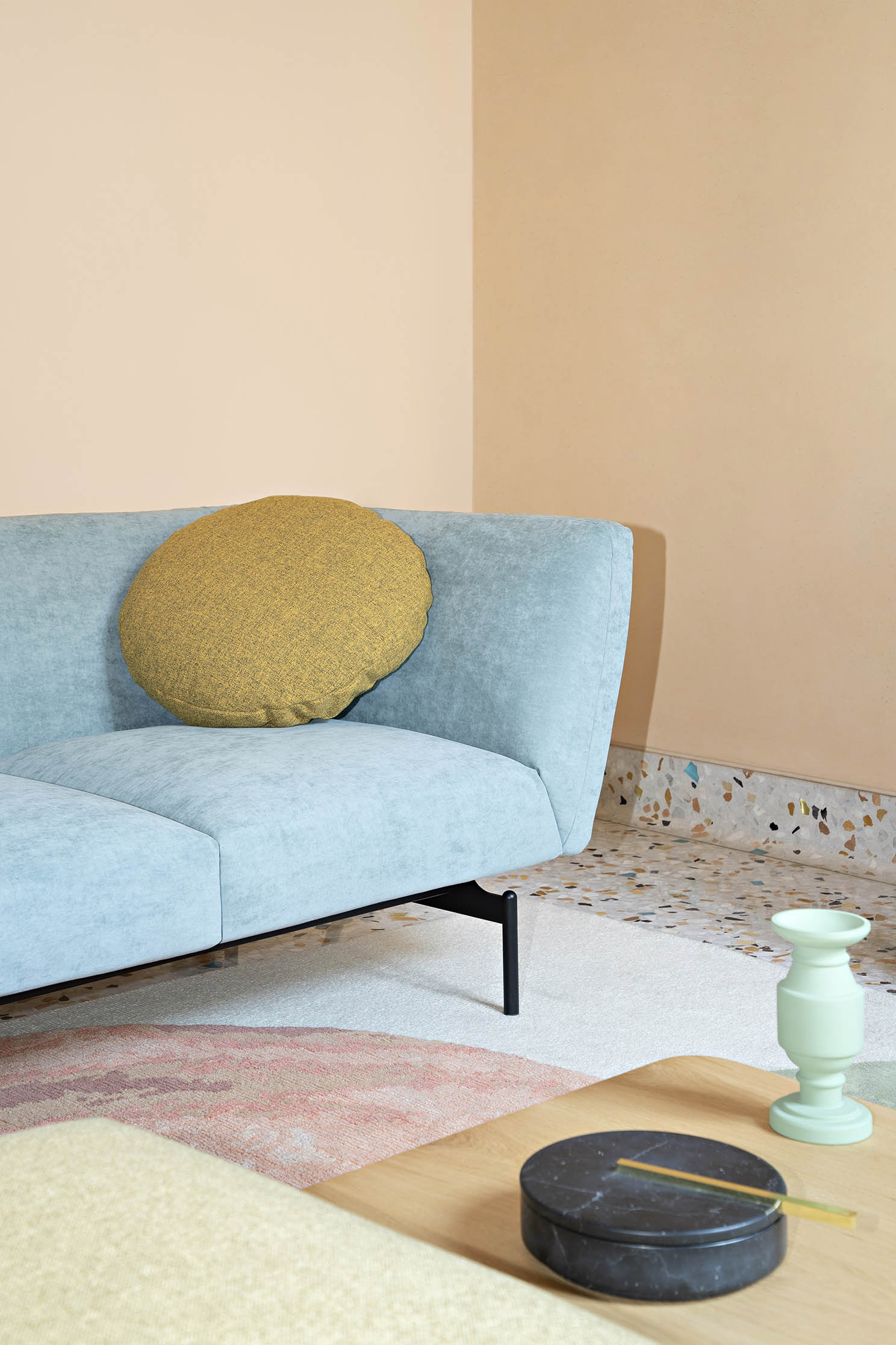 Das Sofa Rendez-Vous wurde von Sergio Bicego entworfen und basiert auf einem stabilen, schwarz lackierten Metallgestell, auf dem verschiedene Sitz- und Polsterelemente flexibel positioniert werden können. Diese modulare Bauweise erlaubt es Ihnen, die Sitzlandschaft ganz nach Ihren Raumanforderungen, Vorlieben und Nutzungsformen zusammenzustellen – ob als klassische Couch, als L-Form oder als erweiterbares Sofasystem.