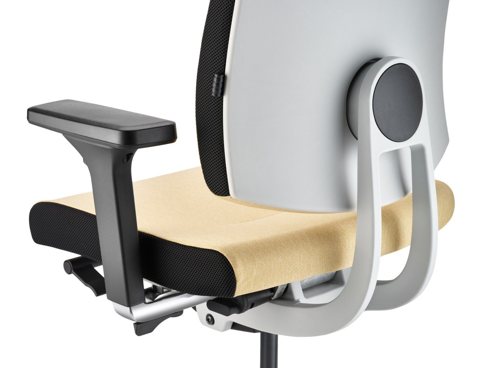 Die bahnbrechende Technologie des Black Dot manifestiert sich in einer flexiblen Rückenlehne, die an nur einem zentralen Punkt befestigt ist. Diese innovative Konstruktion unterscheidet sich grundlegend von herkömmlichen, starren Bürostühlen. Während traditionelle Modelle den Körper in einer Position fixieren, ermöglicht der Sedus Black Dot eine natürliche, dynamische Bewegungsfreiheit – selbst beim seitlichen Drehen oder Wenden.