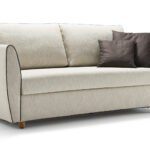 Das Sofa bietet eine ergonomisch durchdachte Sitzfläche, die sowohl für entspanntes Sitzen als auch für längeres Verweilen ausgelegt ist. In ausgeklapptem Zustand entsteht eine gleichmäßige Liegefläche, die eine angenehme Nachtruhe ermöglicht.