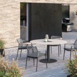 Der Tisch Glarus zeichnet sich durch ein wetterfestes Gestell und eine widerstandsfähige Tischplatte aus, die auch extremen Witterungsverhältnissen standhalten kann. Diese Eigenschaften machen ihn zum idealen Möbelstück für Terrassen, Balkone oder Gärten. Gleichzeitig verleiht ihm das minimalistische Design eine elegante Optik, die sich nahtlos in moderne Wohn- und Außenbereiche einfügt.
