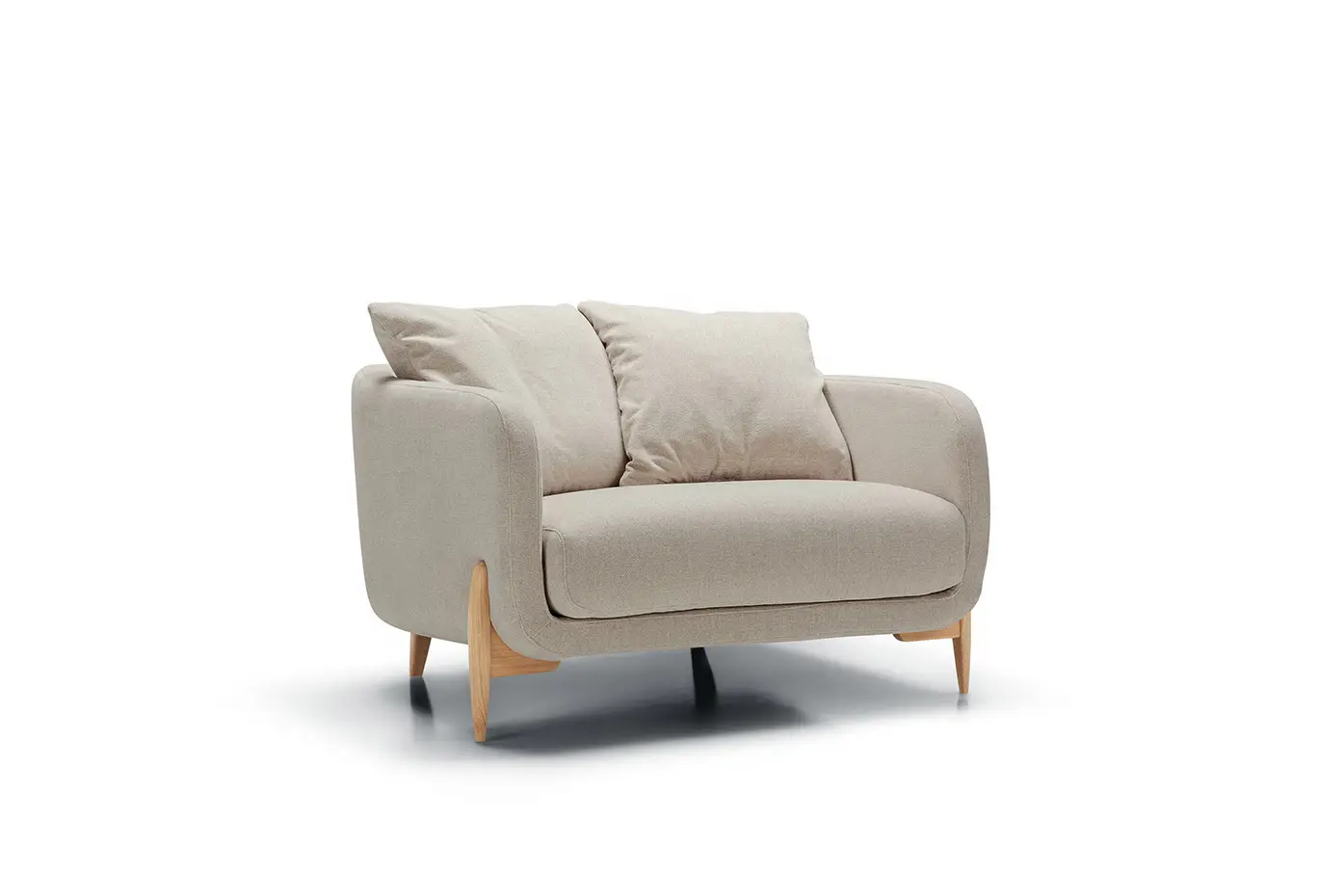 Dank schmalem Korpus und filigranen Füßen wirkt das Design-Sofa luftig und lässt kleinere Räume optisch größer erscheinen. In offenen Wohnkonzepten setzt das skandinavische Sofa einen ruhigen, eleganten Akzent und unterstützt eine klare Raumwirkung.