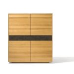 Die Kommode Filigno aus Naturholz gibt es mit vielen Gestaltungselementen. Sie können sich beispielsweise zwischen verschiedenen Türvarianten und Materialien entscheiden. Die Anrichte und das Highboard der Serie Filigno können mit folgenden Türen geliefert werden: