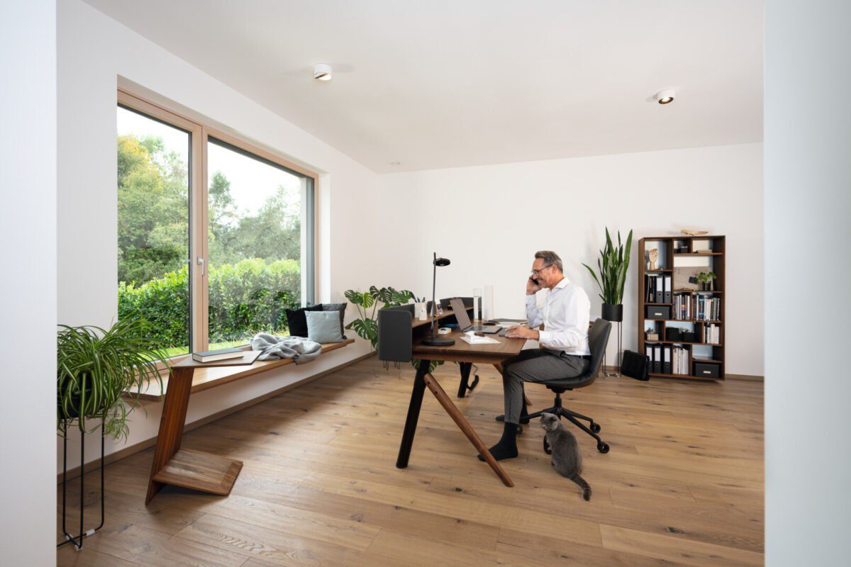 Der Pisa Schreibtisch eignet sich ideal für professionelle Arbeitsplätze zuhause oder im Büro. Durch modulare Optionen wie Aufsatzpaneele, Lichtsysteme und ergänzende Möbelteile passt er sich an unterschiedliche Arbeitsstile und Raumkonzepte an.