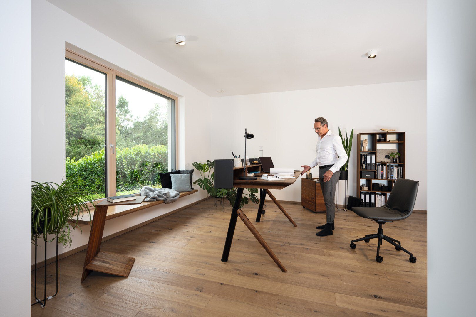 Der Team 7 Pisa Schreibtisch ist ein hochwertiger, elektrisch höhenverstellbarer Massivholz-Schreibtisch, der modernes Home-Office mit natürlichem Wohngefühl verbindet. Durch seine innovative Technik, edle Materialien und durchdachte Ergonomie schafft er eine produktive und zugleich gesunde Arbeitsumgebung.