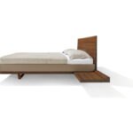 Dadurch, dass die Kufen zurückgesetzt wurden, wirkt das Bett Riletto von Team 7 aus Holz schwebend und richtig leicht. Sehr schön ist es, dass Sie sich bei der Serie Riletto zwischen Holzbettseiten und lederbezogenen Holzbettseiten entscheiden können. Praktisch ist auch der schwebend angebrachte Nachttisch. Auf dem Riletto Nachttisch können Sie die Nachttischlampe, Taschentücher und weitere Utensilien deponieren. Das Gesamtpaket aus Holzbettseiten in Holz oder mit Leder bezogen, dem Kopfhaupt und dem Nachttischschrank in Holzarten wie Eiche und Nussbaum macht einen sehr edlen und hochwertigen Eindruck. In dem Bett Riletto von Team 7 können Sie es sich richtig gemütlich machen und den Schlaf genießen.