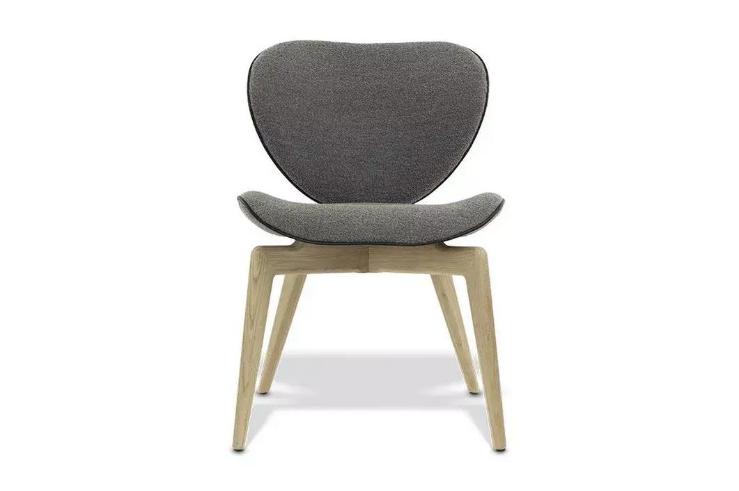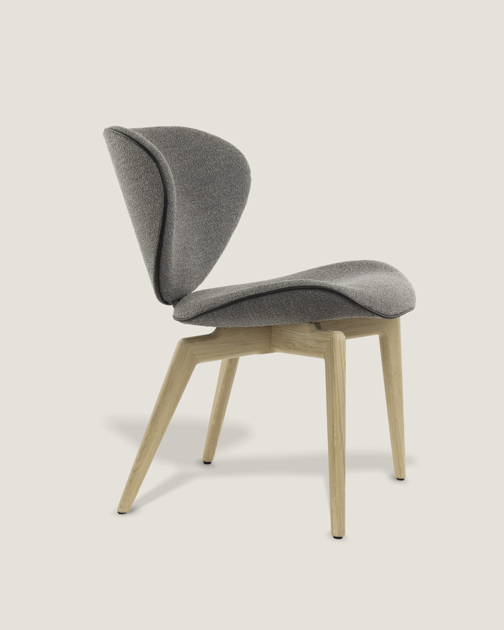 Das prägende Merkmal des Mida Stuhls ist seine charakteristische Rückenlehne. Sie umschließt den Sitzenden sanft, ohne einzuengen, und geht nahtlos in die Armzonen über. Diese organische Form verleiht dem Stuhl eine optische Leichtigkeit, während die hochwertige Polsterung für eine solide Haptik und Langlebigkeit sorgt.