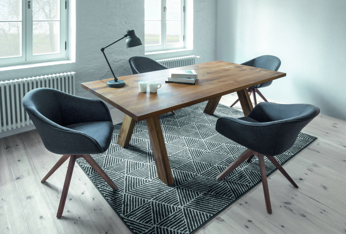 4-Fuß-Holzgestell: Warm und natürlich (Eiche, Kernbuche oder Nussbaum).