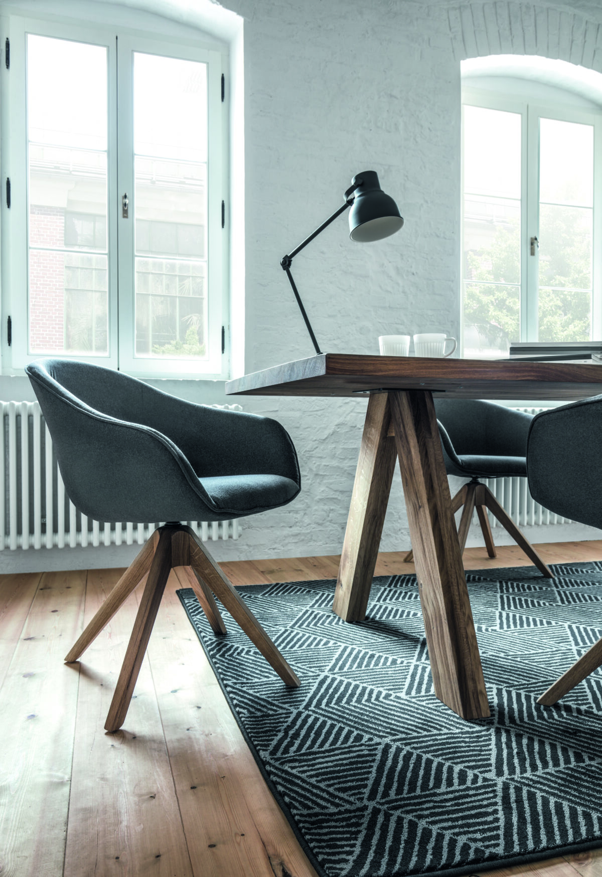 Ist der Stuhl Ibiza auch für das Home-Office geeignet? Ja, durch die feste Polsterung und die ergonomischen Armlehnen bietet der Stuhl genügend Halt für längere Arbeitsphasen, ohne dabei den wohnlichen Charakter zu verlieren. Besonders die drehbare Variante ist hier sehr beliebt.