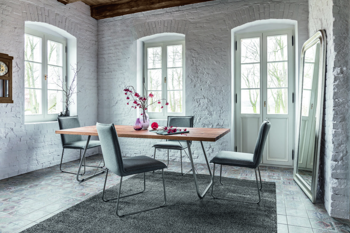 Metall: Moderne Freischwinger, elegante Kufen-Gestelle oder funktionale Drehgestelle (360° Funktion) in Edelstahl oder pulverbeschichtetem Anthrazit.
