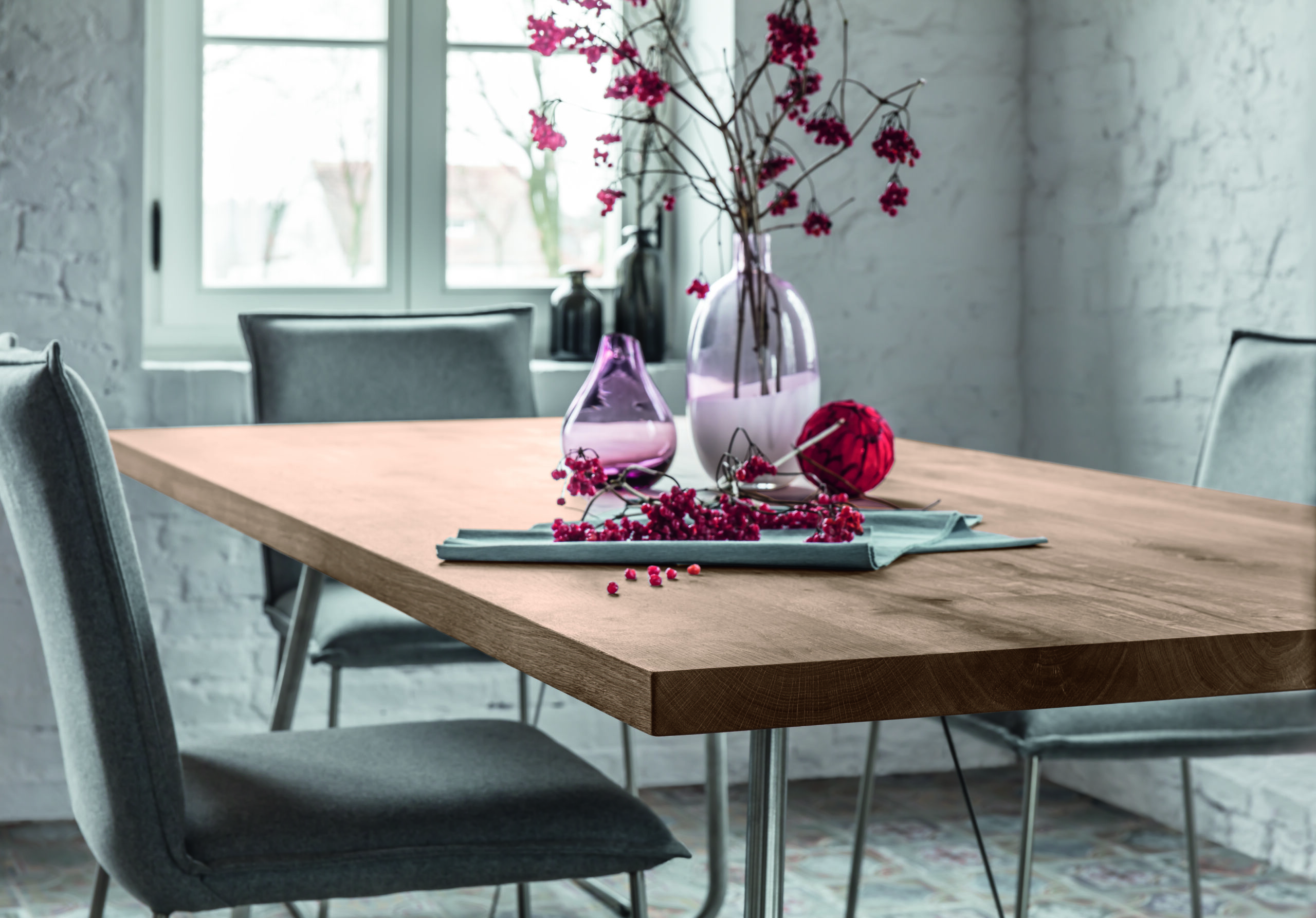 Gestell-Optionen: * Holz: 4-Fuß-Varianten (z. B. Eiche geölt) für eine warme, natürliche Ausstrahlung.