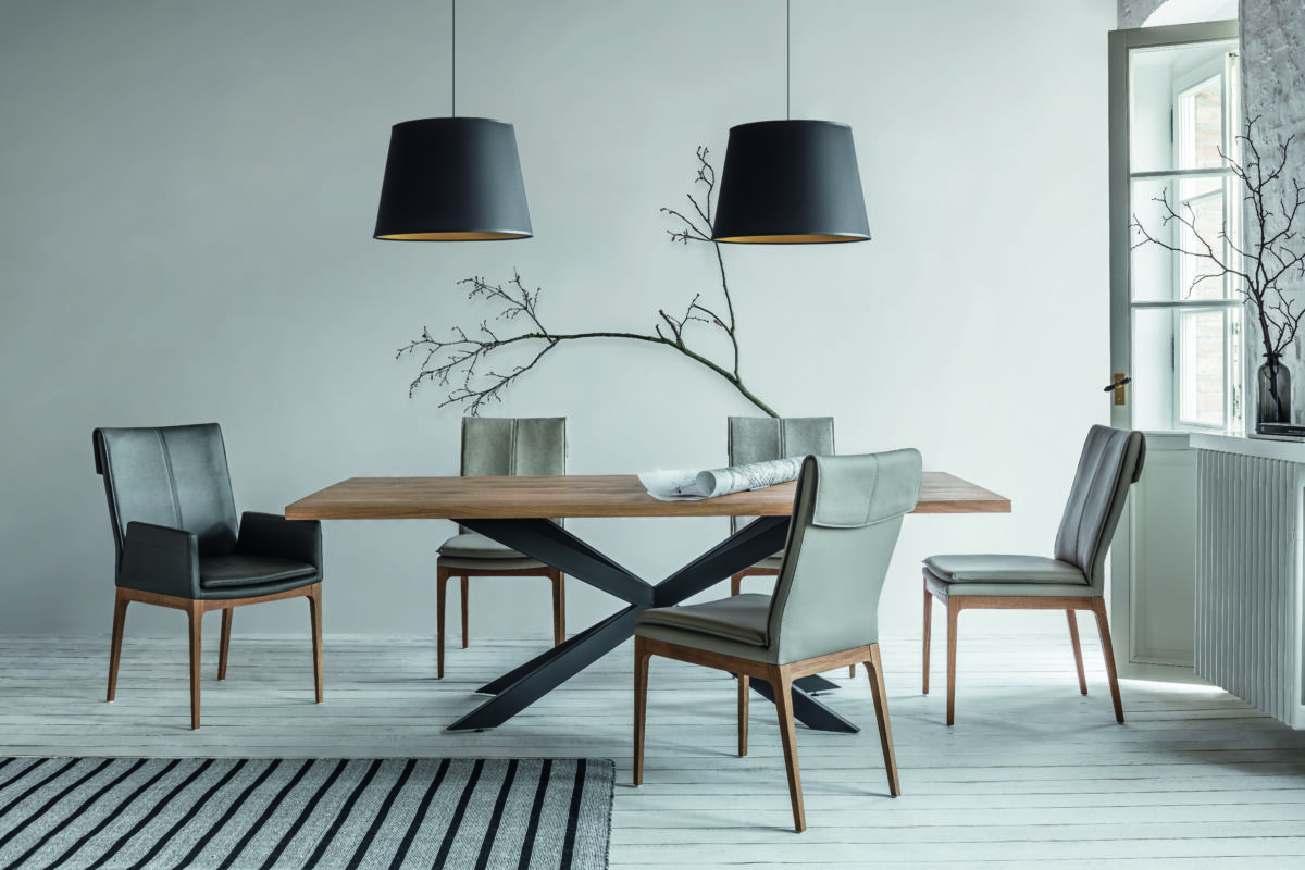 Moderne Metallvarianten (Vierfuß, Kufen oder Spider-Gestell) für einen industriellen oder minimalistischen Look.