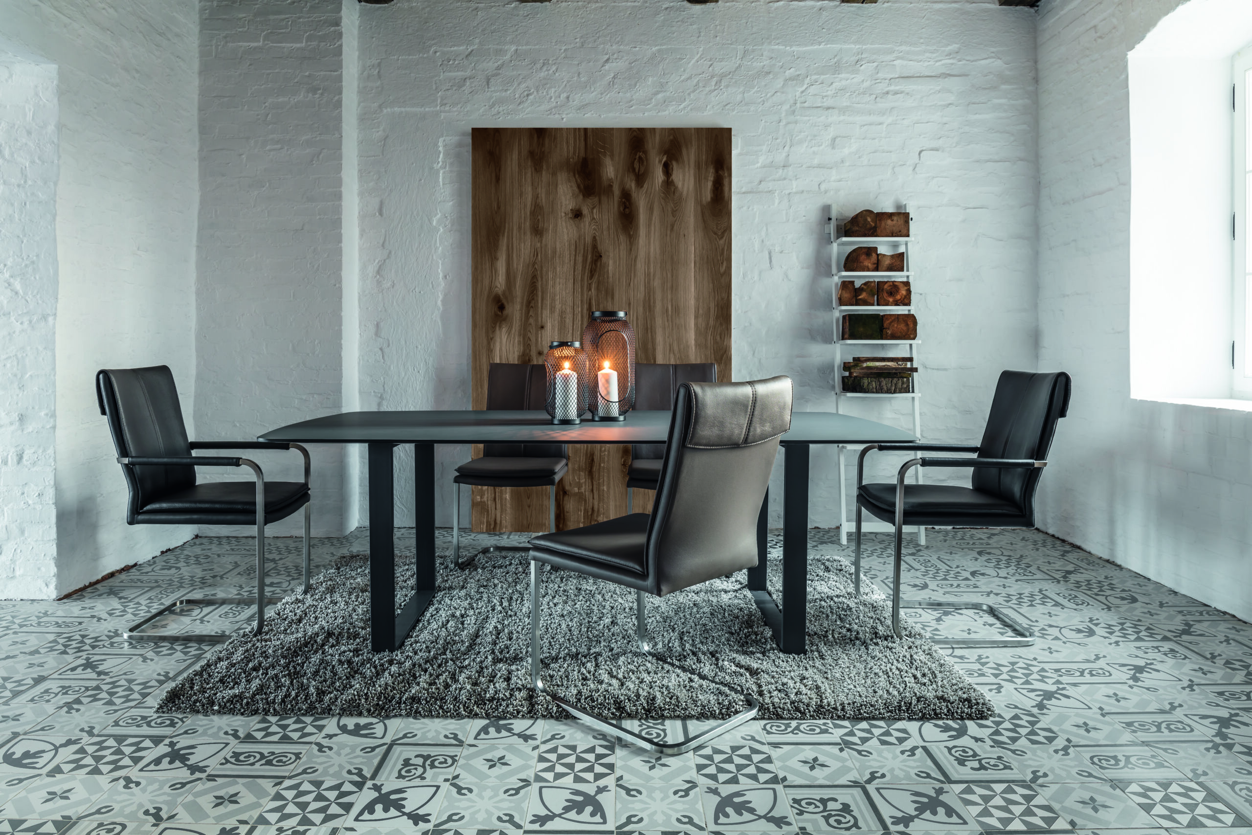 Moderne Metallvarianten (Vierfuß, Kufen oder Spider-Gestell) für einen industriellen oder minimalistischen Look.