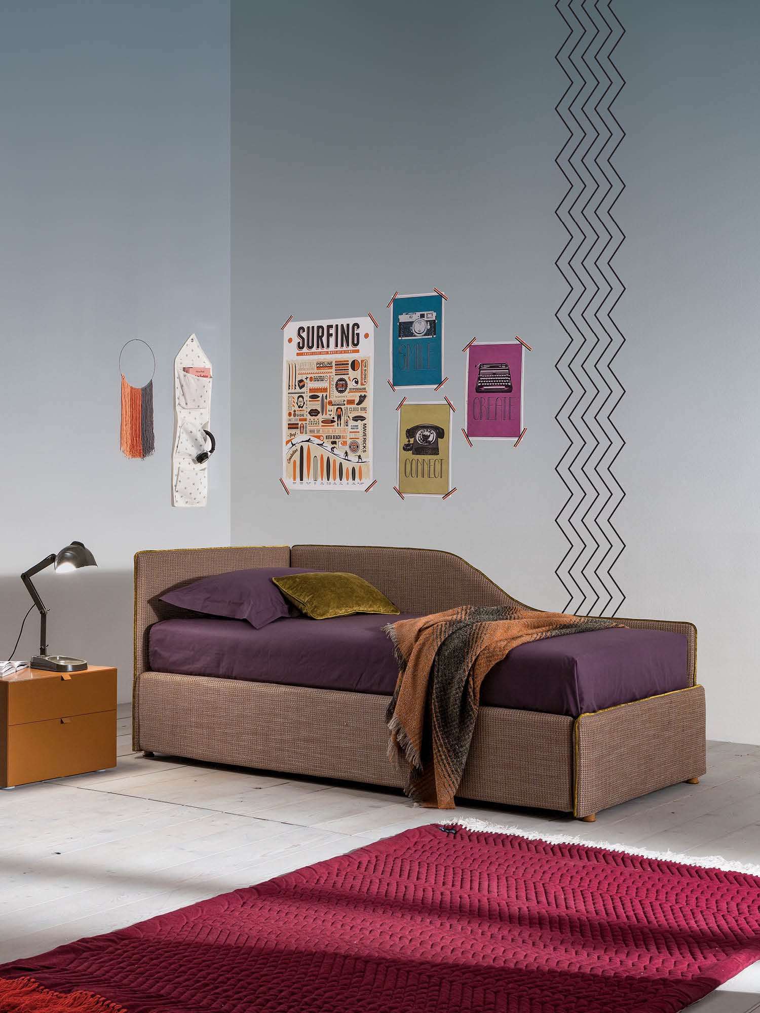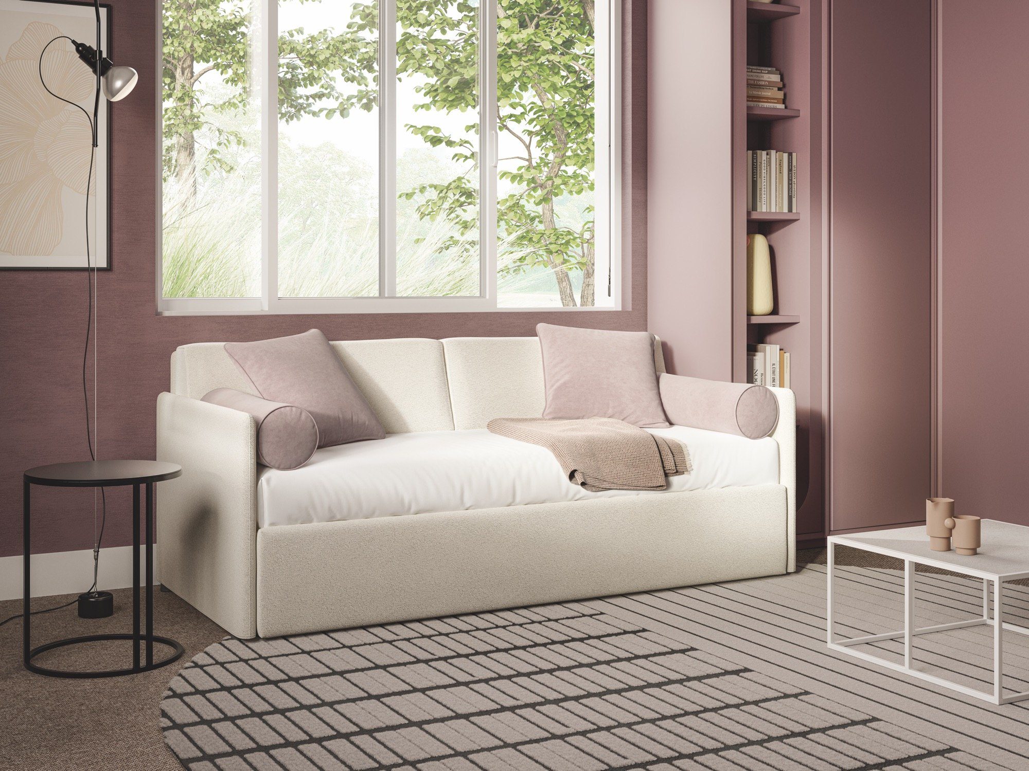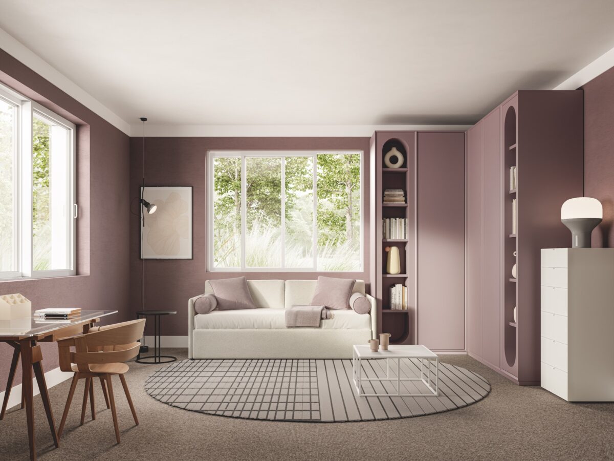 Wer sein Schlafzimmer nicht nur funktional, sondern wohnlich einrichten möchte, findet in Maya ein Bett, das optisch wie ein Polstermöbel wirkt und dadurch Wärme in den Raum bringt. Gerade in kombinierten Wohn-Schlafbereichen oder in Stadtwohnungen, in denen der Schlafbereich sichtbar ist, wirkt dieses textile Bett besonders stimmig.