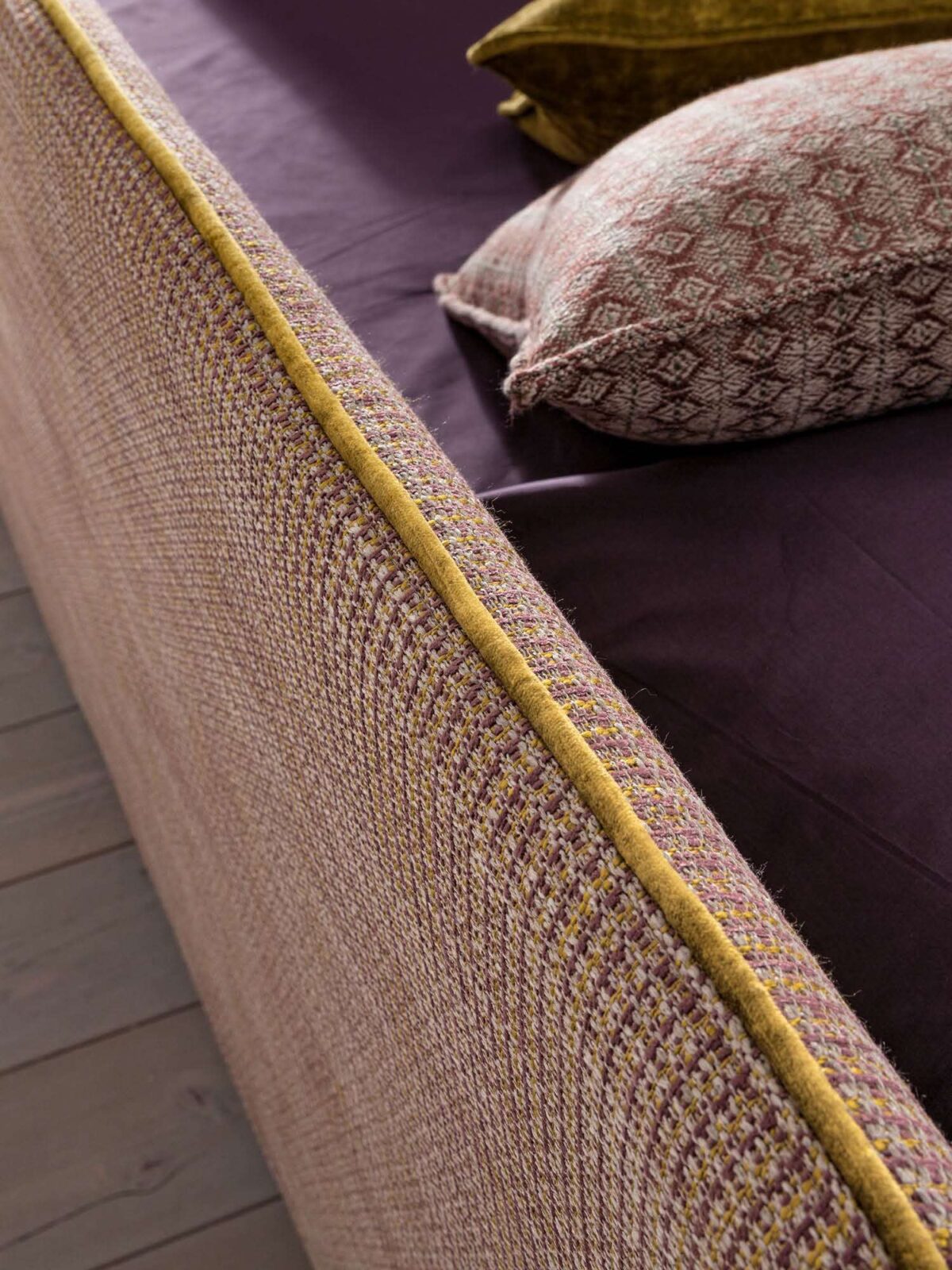 Maya ist auf täglichen Gebrauch ausgelegt. Der stabile, umlaufende Rahmen sorgt für einen guten Stand, die gepolsterten Elemente bringen Komfort und ein leises, textiles Erscheinungsbild ins Zimmer. Durch die harmonischen Proportionen wirkt das Bett nicht wuchtig und lässt dem übrigen Mobiliar – Kleiderschrank, Kommode, Nachttisch – ausreichend Raum.