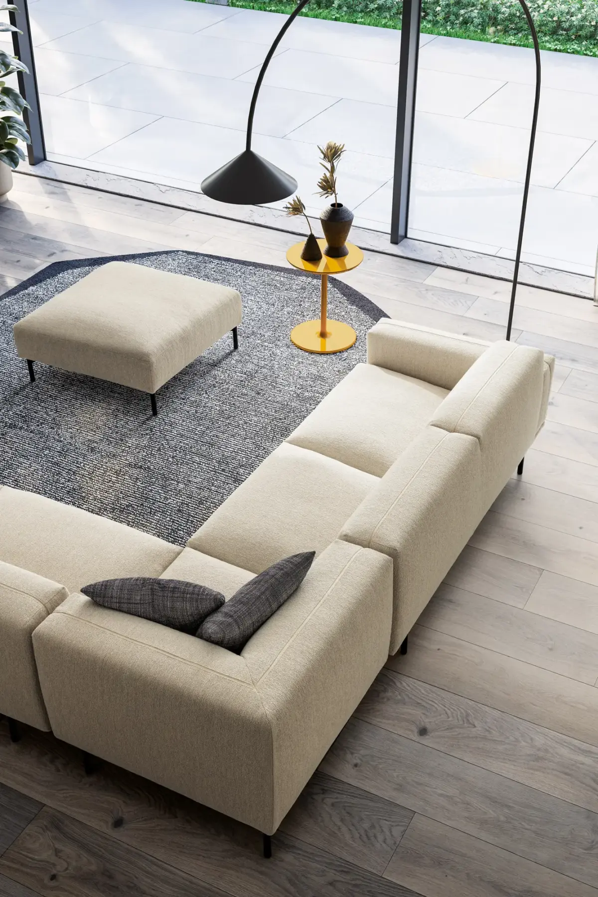 Wilson ist nicht auf eine einzige Ausführung festgelegt. Die Serie lässt sich so planen, dass sie exakt zu Ihrem Grundriss passt. Möglich sind klassische, gerade Sofas für puristische Wohnbereiche ebenso wie großzügige Ecklösungen oder Wohnlandschaften für offene Räume. Durch die modularen Elemente können einzelne Sitze, Eckelemente oder offene Abschlüsse kombiniert werden. So entsteht entweder ein kompakter Zweisitzer für die Stadtwohnung oder eine einladende Familienlösung mit Longchair oder Chaiselongue.