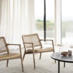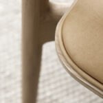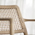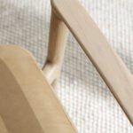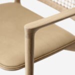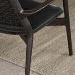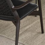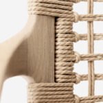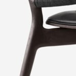 Sein filigraner Rahmen aus massivem Eichenholz verleiht dem Stuhl eine warme und einladende Ausstrahlung. Gleichzeitig schafft die Kombination aus einer handgeflochtenen Rückenlehne und einer luxuriös gepolsterten Sitzfläche eine harmonische Gesamtästhetik.